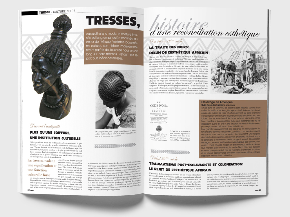 Magazine spécialisé dans la beauté noire & métisse : mode, coiffure, produits cosmétiques, culture, ... (A4, 68 pages).
